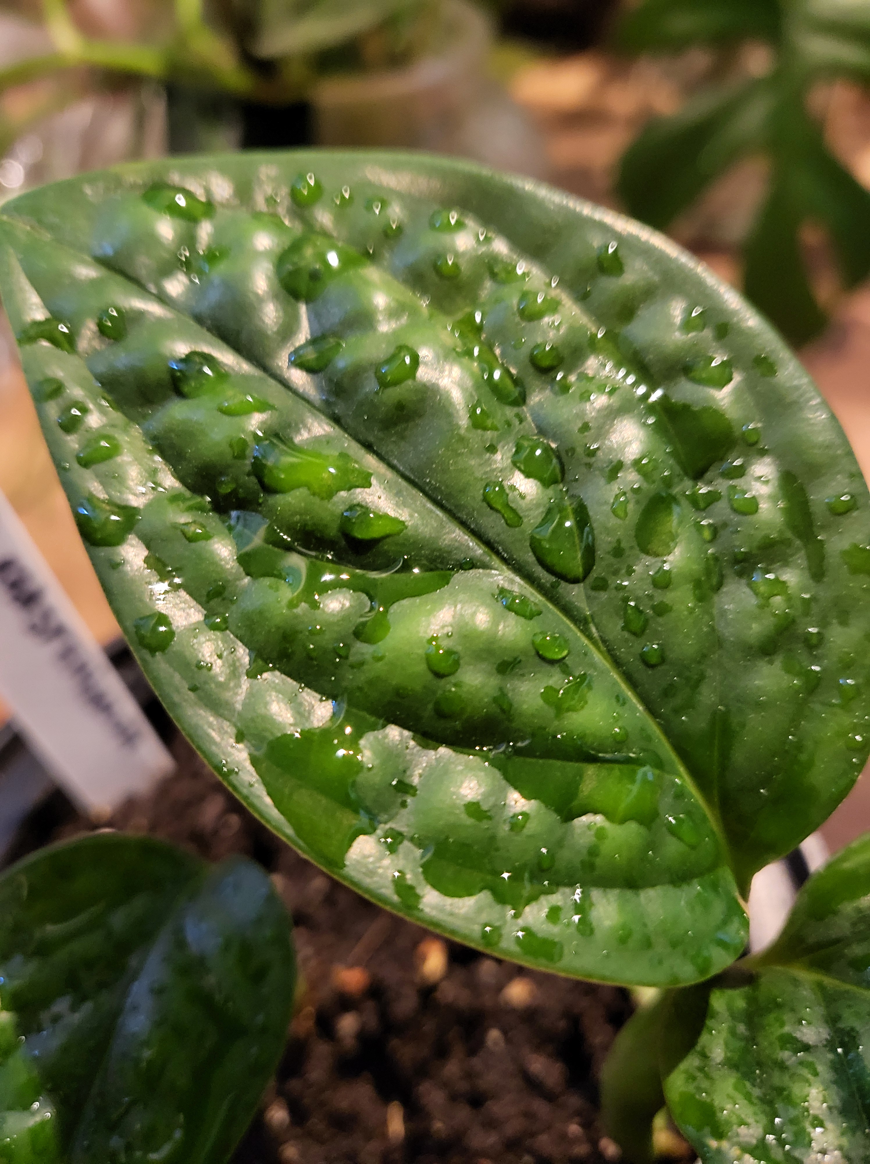 This particular monstera grows slower compared to Deliciosa or Adansonii and is frugal regarding light and water. Luckily for this plant, I live in a basement flat, so the humidity is spot on; although Peru is comfortable in low light, I’ve added some artificial lights to keep all my plants happy over winter.