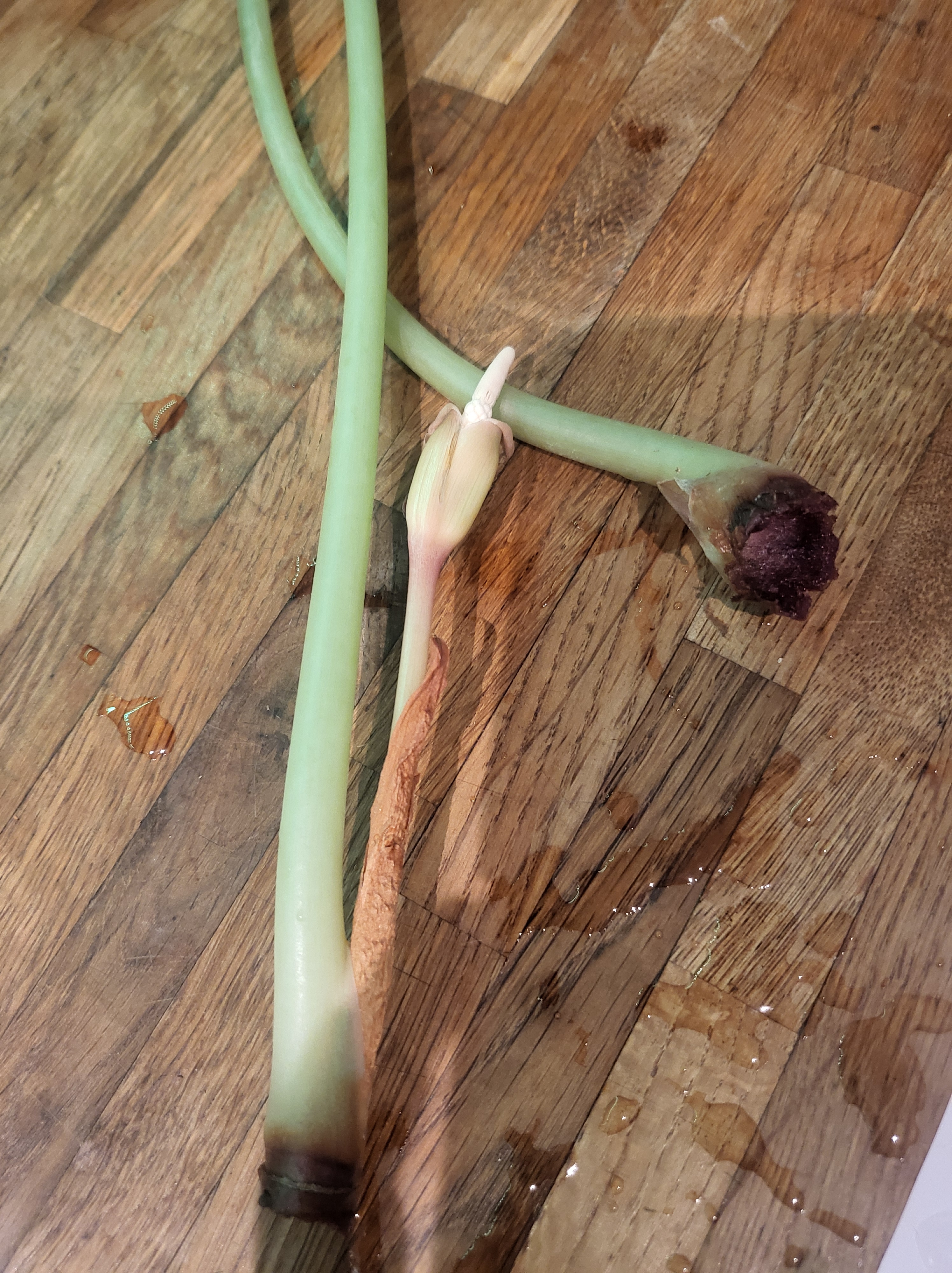 My alocasia Polly rotted in water and I only saved half the root, but I doubt anything green will come out of it. My alocasia Cuprea Red Secret pushed a beautiful flower and below the green part rotted completely, I only have a small corm and hope to have a full plant again in about a year or two. The juvenile alocasias: Black Velvet, Silver Dragon and Frydek reverted to corm states.