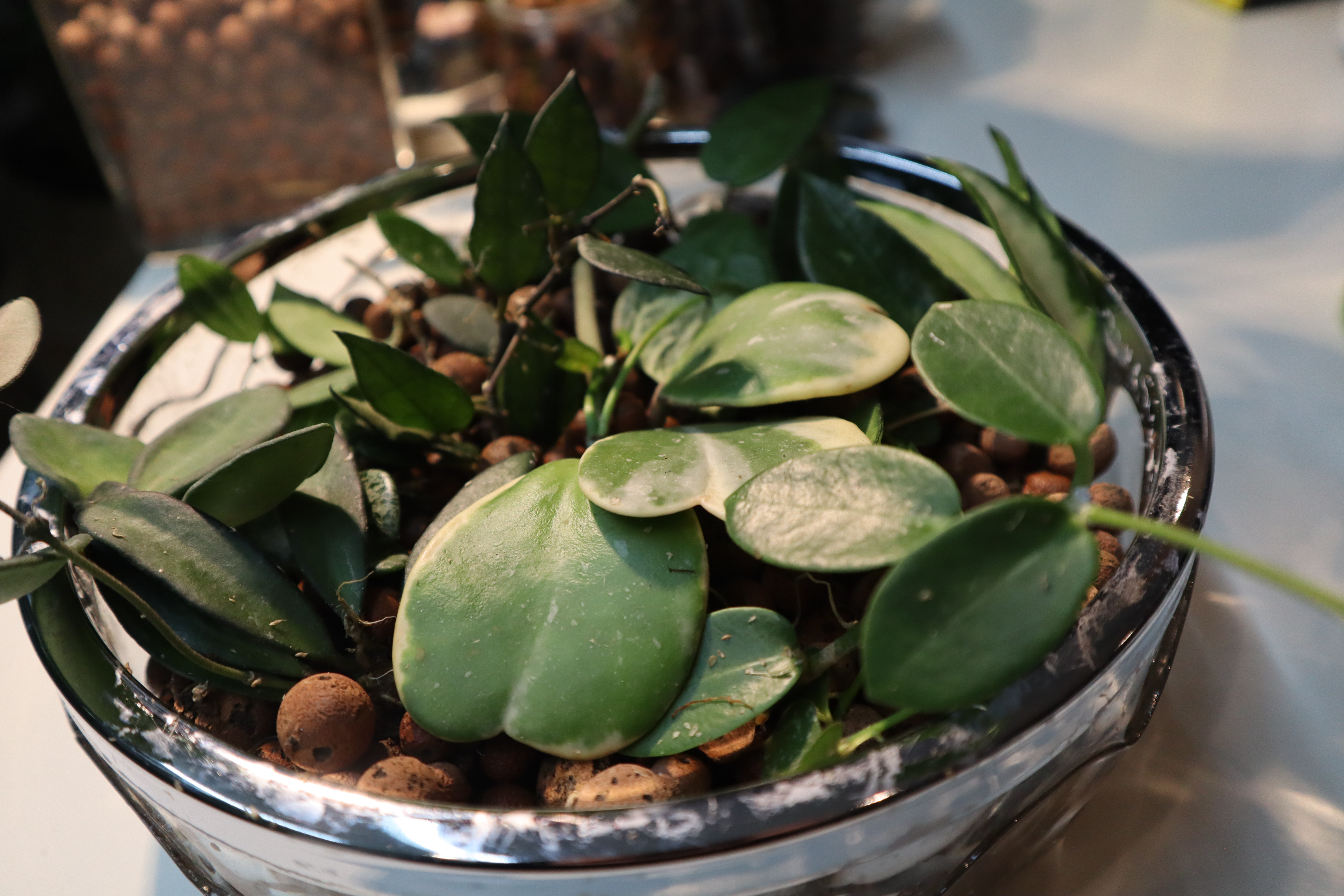My last victims of leca enthusiasm are all the hoya clippings that were rooting in moss. I moved all of them in a rather fancy serving crystal bawl.